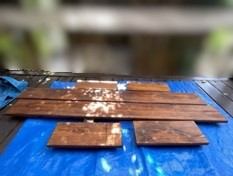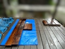 自宅に持って帰ってきて、塗料がしっかり木材に浸透するよう願いながらサンダー掛け。