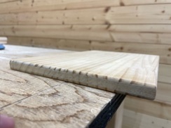 棚の側板は溝を彫って、お品書き用の板は角を面取り。