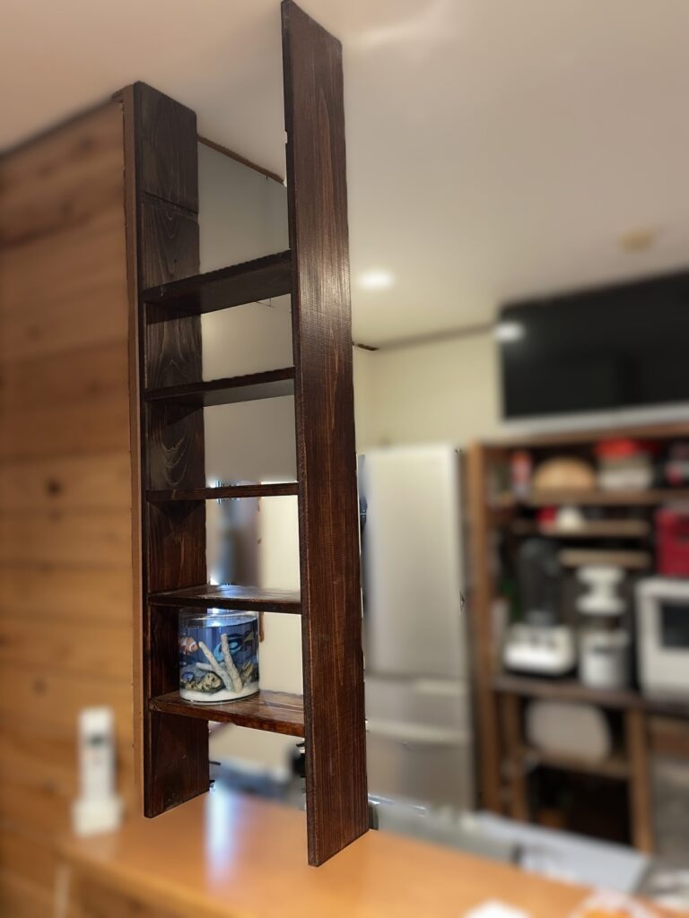 キッチンカウンターから天井まで、ピッタリ合う棚にしたい。