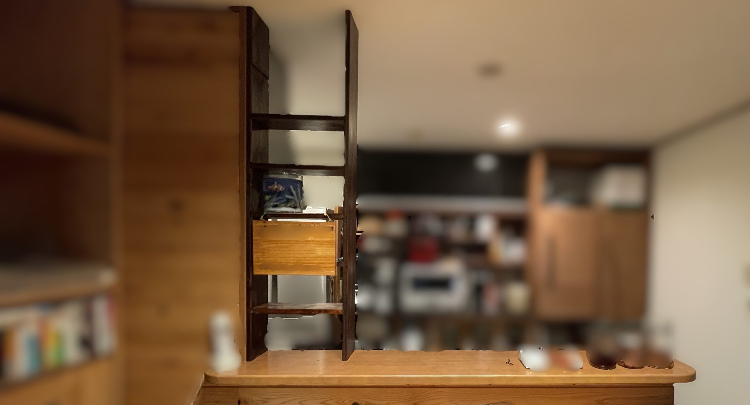 キッチンカウンターから天井まで、ピッタリ合う棚にしたい。