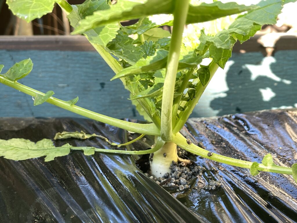 3年目の挑戦も失敗だった。同じ時期に育ててたハクサイは成功だったので、ダイコンって難しいんだな。
