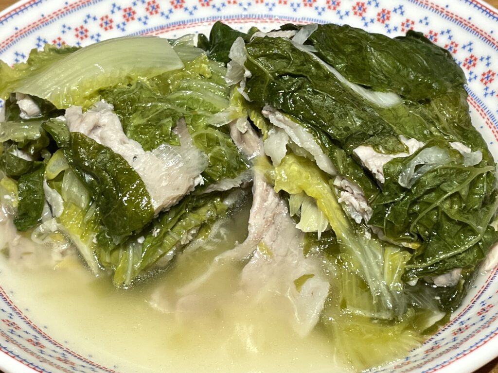 ハクサイの甘味を感じるために「ハクサイと豚肉の重ね蒸し」でいただきました。