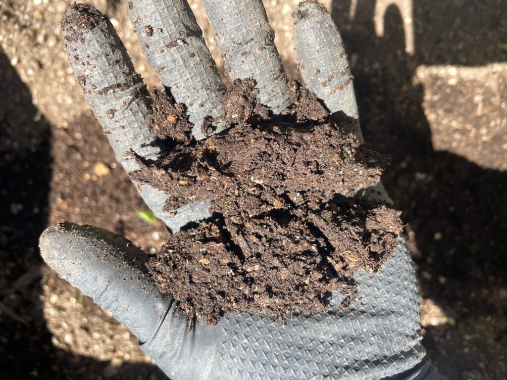 良くない土は粒同士の固まりだったものが、集まって粘土のような乾いた固い土になる。