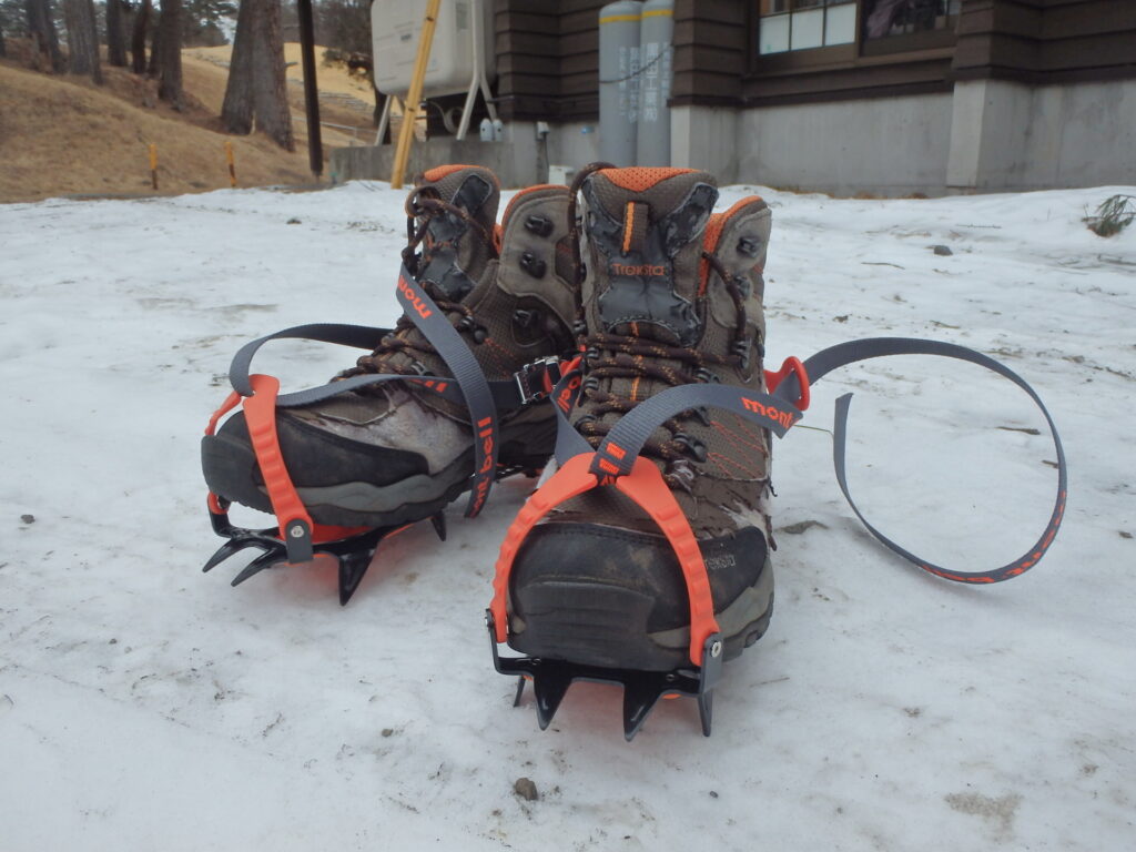 降雪している部分はほとんどありませんでしたが、気温は-4℃です。凍っている可能性もあるので軽アイゼン付けました。