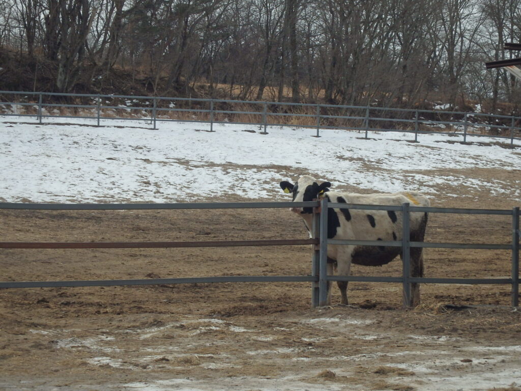 寒いし牛舎で温ってるんだろうなと思いましたが、1頭だけ出てきてくれてました。
